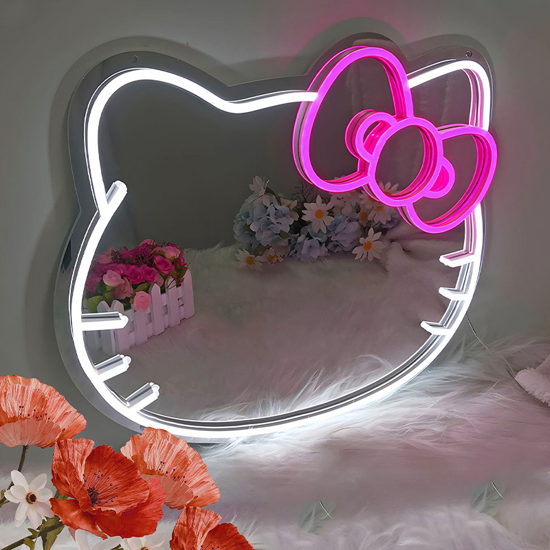 Custom neon mirror lights, wall hanging mirror neon sign