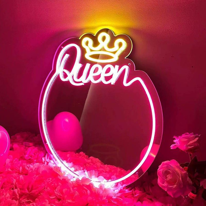 Wholesales LED Neon Light Mirror, Queen Neon Mirror Sign For Room Decor